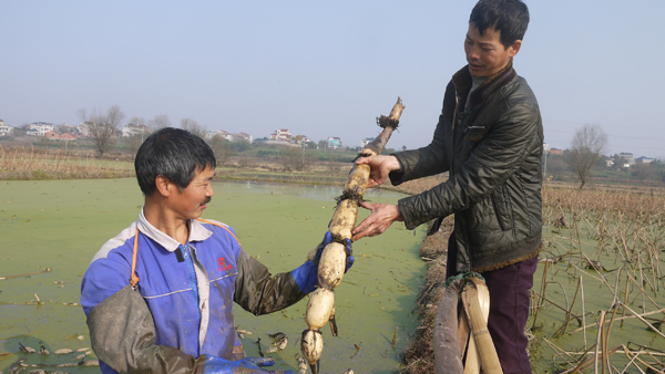 夏小兵今年49岁,夏小青今年42岁。原先家庭条件一般,早些年,在朋友的引荐下,兄弟俩帮福建老板一同跨出国门前往印尼和越南打工,干的活是山里淘金,虽很累但能赚钱。兄弟俩把赚来的钱带回到村里分别建起了漂亮的新房。但兄弟俩感到国外打工很辛苦,人生安全保障系数低。于是,在2014年回到村里从村民手中流转了54亩土地主要用于种藕及部分其它蔬菜。